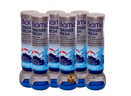 Bama Trainer Fresh Give your sports shoes a freshness boost: Bama Trainer Fresh neutralises unpleasant odours with its anti-bacterial formula and lasts for up to 48 hours. What's more, it couldn't be easier to apply thanks to the practical double nozzle. For hygienically fresh shoes all day long. Contents: 100 ml
